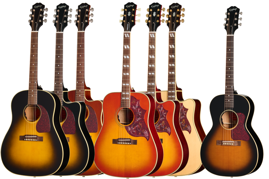 Inspired By Gibson-serien är utvecklad i samarbete med Gibson Acoustic. Epiphones nya Standard Acoustic-serie har äkta och solid mahogny i botten och sidor, solitt granlock och greppbräda i rosewood.