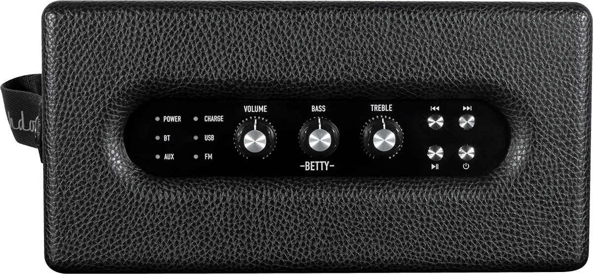 Part of the prestigious Elizabeth Line, BETTY is a portable 40W speaker that blends elegant design with powerful performance. Weighing just 2.6 kg, it features a 4" mid-bass driver and dual 20mm domes for detailed, immersive sound, enhanced by a two-way inverted phase system for rich spatial depth. With Wireless AudioStreaming, USB, and AUX connectivity, a long-lasting 2600/3000 mAh battery, and adjustable bass/treble controls, BETTY delivers clear, distortion-free audio with an SNR over 90dB - perfect for music, podcasts, or calls. Stylish, versatile, and portable, BETTY is proof that great things come in small packages.