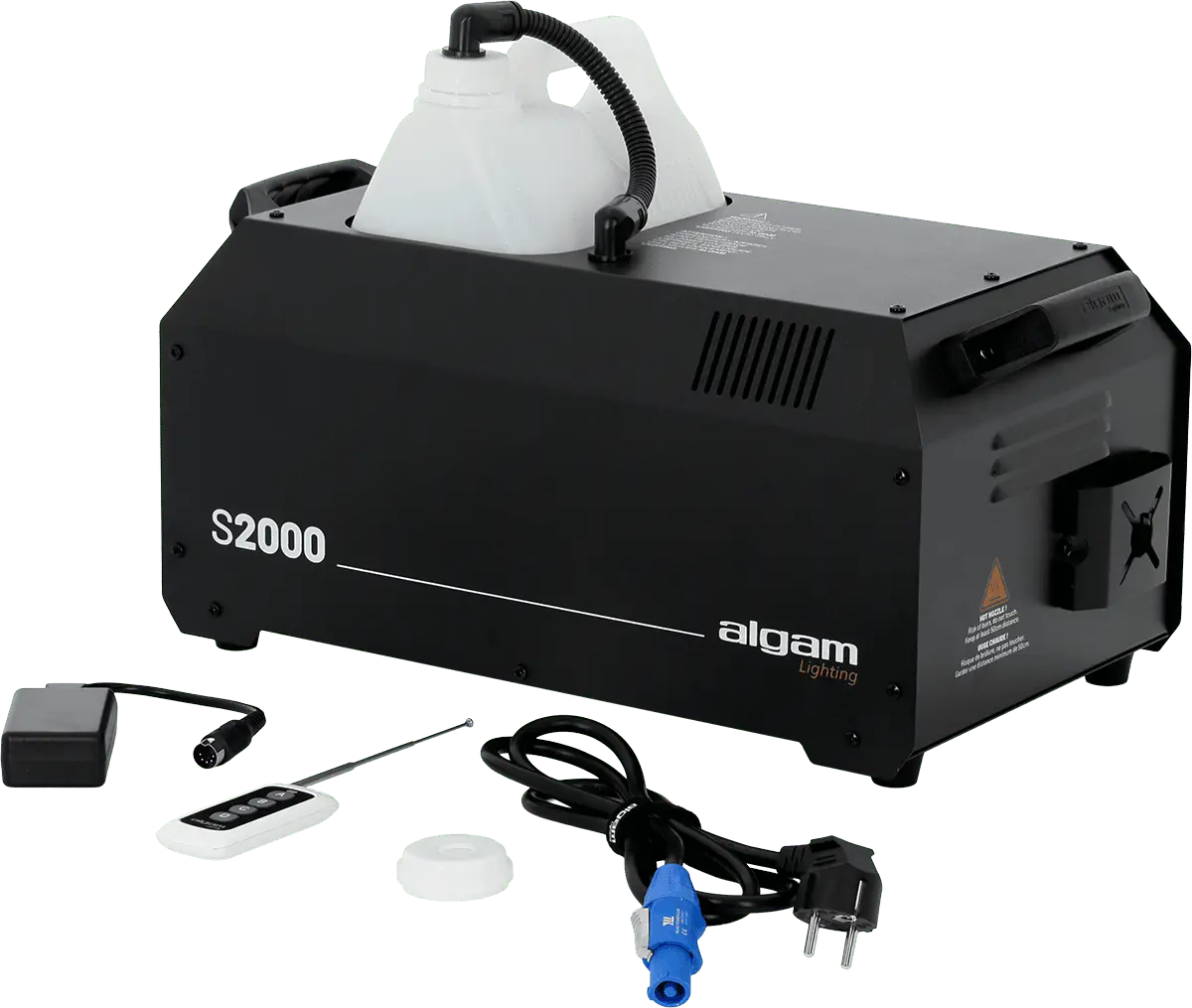 The S2000 by Algam Lighting stands out for its ability to produce a large volume of dense, uniform smoke, ideal for enhancing your lighting effects and creating an immersive atmosphere. Its 1500 W heating element, ready in just 5 minutes, guarantees quick start-up. With an output of 850 m³/min and a jet reaching 6 meters, it meets the needs of large stages, outdoor events, or fixed installations. Its maximum jet duration of 30 seconds delivers strong effects, with the integrated shut-off valve allowing precise control of the projection to match each sequence.