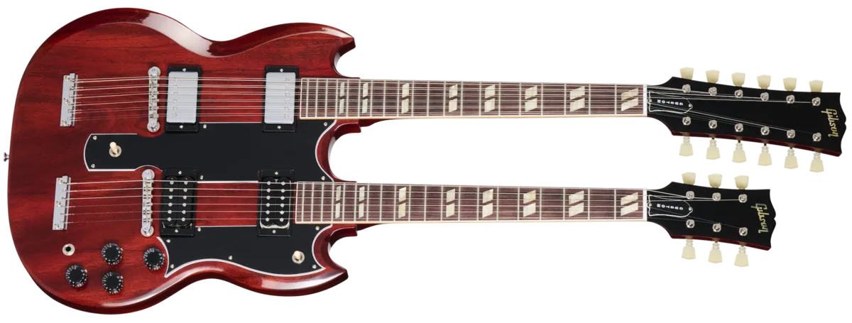 There are very few guitars that can claim to be as instantly recognizable and iconic as Jimmy Page's 1969 EDS-1275 Doubleneck. The photos of him playing it on stage with Led Zeppelin are indelible to rock 'n' roll history. While Gibson has been making doubleneck electric guitars since 1958, Jimmy was the player who defined the EDS-1275 from the day it was delivered to him. The Gibson EDS-1275 allowed him to play the numerous 6 and 12-string acoustic and electric guitar parts of Stairway to Heaven during live performances. He also later used the EDS-1275 for The Song Remains the Same, The Rain Song, Celebration Day, Tangerine, and more recently at The Rock & Roll Hall of Fame in November 2023. Made in close collaboration and with significant input from Jimmy Page, the Jimmy Page EDS-1275 from Gibson Custom uses new 3D scanning technology to aid in hand-crafting an effective clone of his EDS-1275 as it originally appeared prior to its extensive use and receiving the various dings and abrasions that invariably come with use on major world tours. The VOS nitrocellulose lacquer finish gives it a softly aged patina without the custom, highly-detailed Murphy Lab aging that duplicated the lacquer checking and other wear of the original guitar that was featured on the Jimmy Page EDS-1275 Doubleneck Collector's Edition. The Jimmy Page EDS-1275 features a double-cutaway one-piece mahogany body that provides exceptional access to the full length of both the 12-string and six-string mahogany necks. Both necks have long tenons and are hide glue fit, and the neck profiles are recreated from 3D scans of the necks on the original guitar. The necks are both capped with bound Indian rosewood fretboards. Each fretboard is equipped with 20 authentic medium jumbo frets and adorned with aged cellulose nitrate parallelogram inlays. The fretboards of both necks have a 12" radius, which is perfect for both playing chords as well as for string bending while soloing. The 18 tuners are Kluson® double line, double ring style, just like those found on the original guitar, and even the headstocks feature the correct 17-degree angle and specific logo stylization found on Jimmy's EDS-1275. The electronics are just as authentic and deliver all of the sonic character of Jimmy's legendary EDS-1275. Two uncovered Jimmy Page EDS-1275 Custombuckers with double black bobbins and Alnico 5 magnets are used for the two six-string pickups, while a covered pair is installed on the 12-string neck. Of course, the two volume and two tone controls use CTS® potentiometers and period-correct ceramic disc capacitors, and the pickup select switch, neck select switch, and output jack are all from Switchcraft®. Here is your opportunity to own a clone of Jimmy Page's famous 1969 EDS-1275, identical to how it appeared on the day that he originally received it. A Gibson Custom hardshell case is included, along with a vintage leather strap and a certificate of authenticity with a photo from famed photographer Barrie Wentzell.