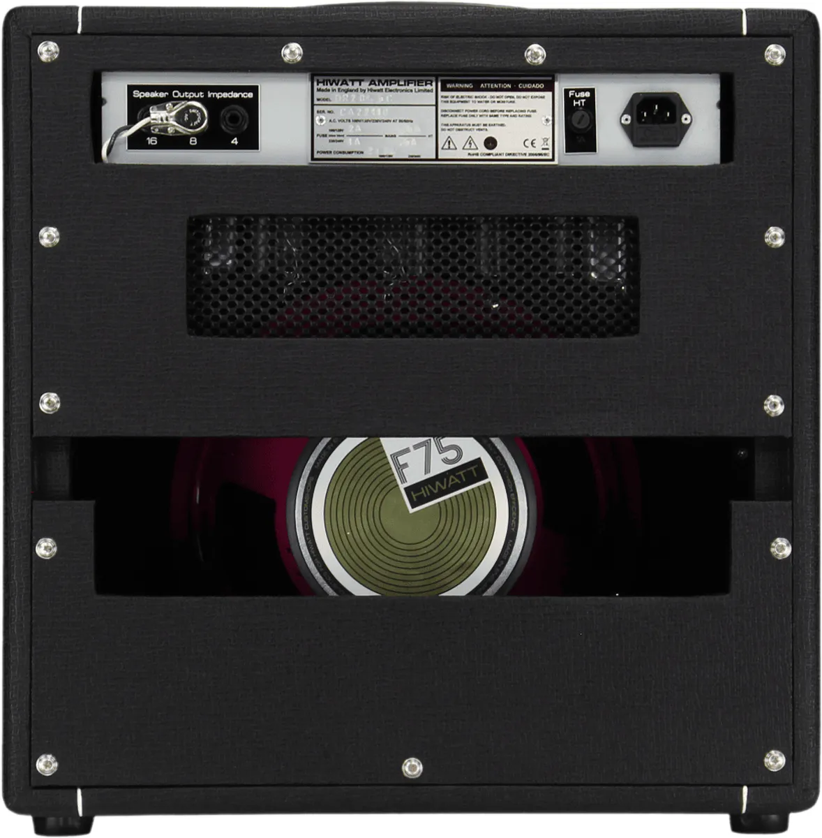 This 1x12 combo version of the DR20/0.5 is equipped with the F75-75 watt model specially developed by Fane for Hiwatt amps. With its modern design, it perfectly captures the amp's character while meeting today’s expectations. It pushes the upper mids, giving it a clear, articulate, and punchy sound, but without being harsh to the ear. It also feels like a much more present guitar. Once pushed to its limits, it produces a subtle saturation that helps the guitar cut even more through the mix.