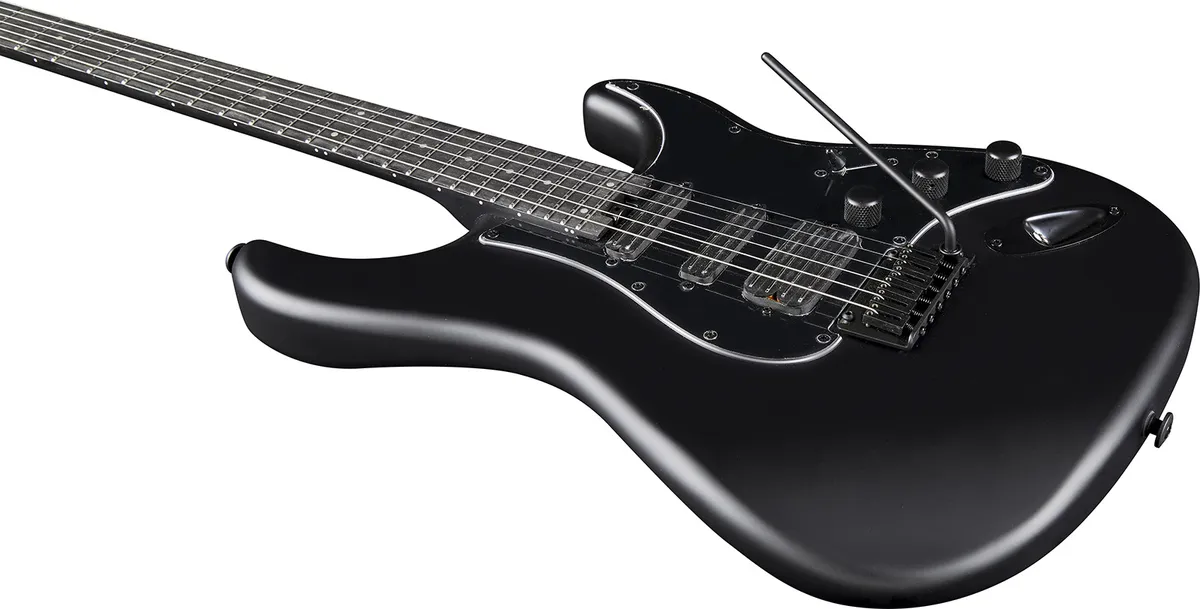 Don't be fooled by its stealthy name, the Aire 500 Stealth's lutherie has received the utmost attention to offer guitarists an attractive, well-built instrument. The body is made from Paulownia for lightness and resonance. The sturdy, comfortable American maple neck, ergonomically 5-points screwed, is topped by a 24-fret Eko WPC+ resin fingerboard, providing comfort for your highest and most extreme solos. The HCR57 steel vibrato block features independently adjustable bridges to fine-tune the action and harmonics of each string. Its 4+2 locking tuners configuration ensures stable tuning and vibrato effects. Finally, the all-black satin matte finish is truly remarkable for its value !