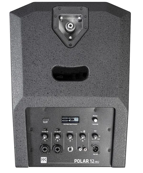 POLAR offers a 4-channel mixer including master volume control, Bluetooth 5.0 and TWS audio streaming: two channels for microphones and line signals (e.g. mixers, keyboards), a high-impedance instrument channel (guitar) and an AUX channel for DJ equipment or MP3 players, which simultaneously controls Bluetooth audio. The microphone inputs feature switchable phantom power for operating high-resolution condenser microphones. A USB-C charging socket is also integrated for maintaining the charge of smartphones, tablets and battery-powered wireless microphone receivers without the need for an additional charger. With Bluetooth TWS (True Wireless Stereo), two POLAR MK2 systems can be connected wirelessly to play a stereo stream from a tablet or smartphone.