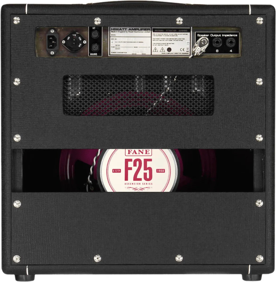 This 1x12 combo version of the Custom 20 is equipped with the F25-25 watt model specially developed by Fane Acoustics™ for Hiwatt amps. With its modern design, it perfectly captures the amp's character while meeting today’s expectations. It pushes the upper mids, giving it a clear, articulate, and punchy sound, but without being harsh to the ear. It also feels like a much more present guitar. Once pushed to its limits, it produces a subtle saturation that helps the guitar cut even more through the mix.