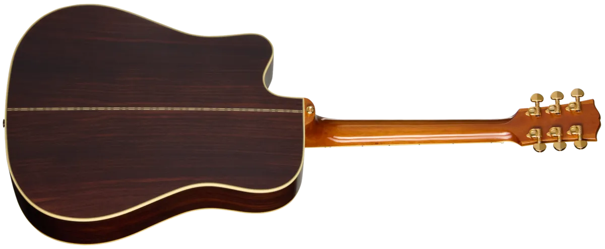 The unmistakable Hummingbird ™, in a new Deluxe cutaway version, has joined the Epiphone Inspired by Gibson Custom lineup. These beautiful acoustic guitars have been designed and configured by Epiphone in partnership with the Gibson Custom acoustic guitar team in Bozeman, Montana. The Hummingbird Deluxe EC has been upgraded and modernized with beautiful, solid rosewood used for the back and sides, giving this guitar the full and rich sound of the traditional Hummingbird, along with the added tonal nuances of rosewood, resulting in a deeper bass and even more sparkling overtones in the highs. The Hummingbird Deluxe EC's cutaway body provides easier access to the upper frets, making this an excellent choice for lead guitarists and others who want to explore the entire range of the fretboard. The rosewood back and sides are paired with a thermally aged solid spruce top, resulting in a pre-aged tone that is louder and more resonant than that of a non-thermally aged top. It's like getting the benefits of many years of wood aging and seasoning in a brand-new guitar. The top is reinforced with traditional scalloped X-bracing, which is made from quartersawn, solid spruce.