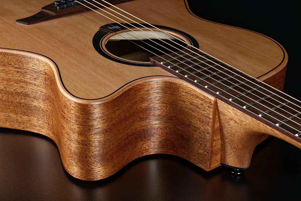 and sides provide balance and depth. Perfect for fingerstyle and versatile playing, this guitar's cutaway design ensures effortless access to the higher frets. The Brown Brankowood fingerboard and bridge