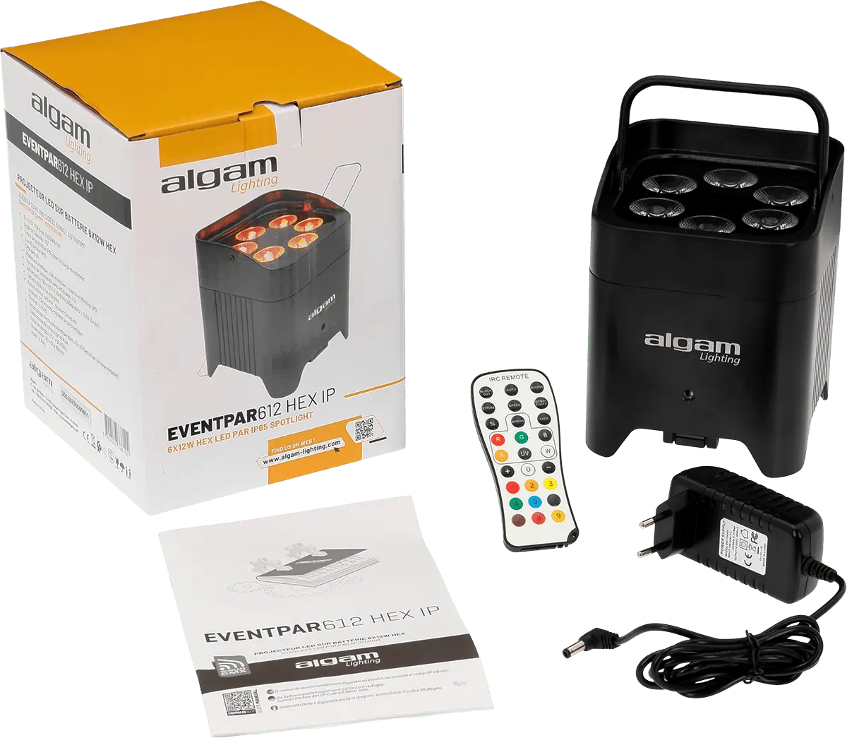 The EVENT PAR 612 HEX IP is a professional PAR projector designed to meet the needs of the most demanding performances. Thanks to its built-in lithium-ion battery and IP65 rating, it can be used both indoors and outdoors, whatever the conditions. Its compact and robust design allows for quick and flexible installation for a variety of events: concerts, weddings, or temporary architectural installations.