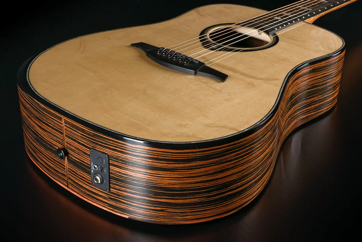 and sides produce a dynamic and balanced range, perfect for bold strumming and expansive melodies. The ergonomic armrest bevel ensures comfort during extended sessions, while the abalone inlays