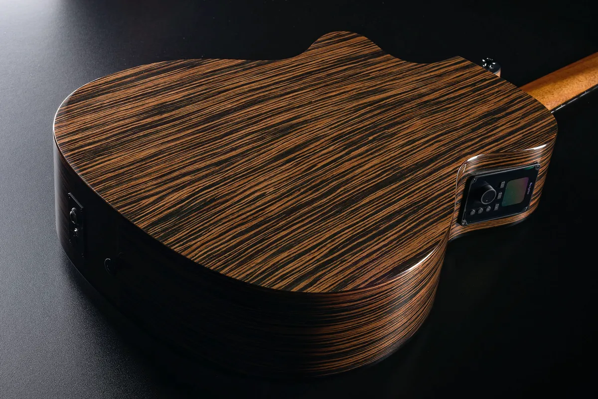 armrest bevel provides exceptional comfort. Abalone inlays, a high-gloss finish, and a sustainable Black Brankowood fingerboard and bridge make this guitar a luxurious yet eco-conscious choice for