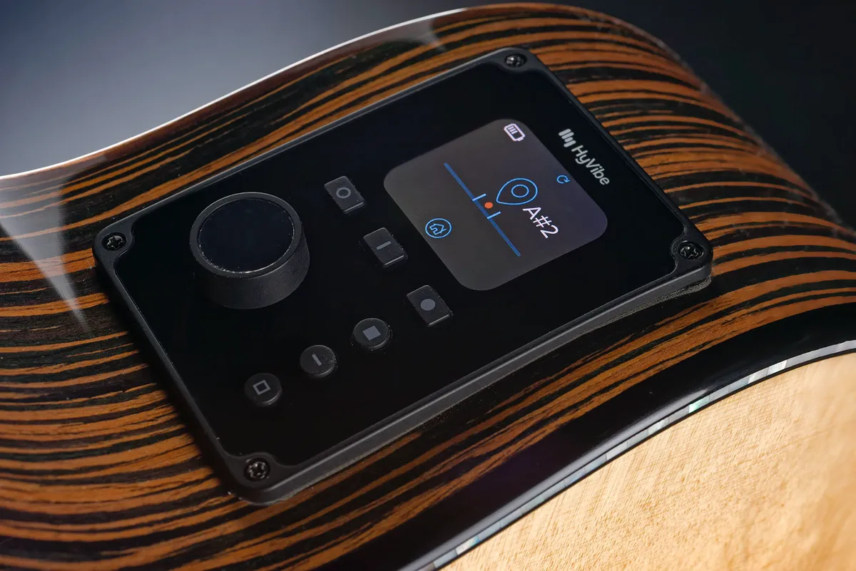 The HV50-N-ACE brings the elegance and warmth of nylon strings to the pinnacle of the HyVibe series. Its auditorium body and solid bearclaw Engelmann spruce top create a sweet, balanced tone,