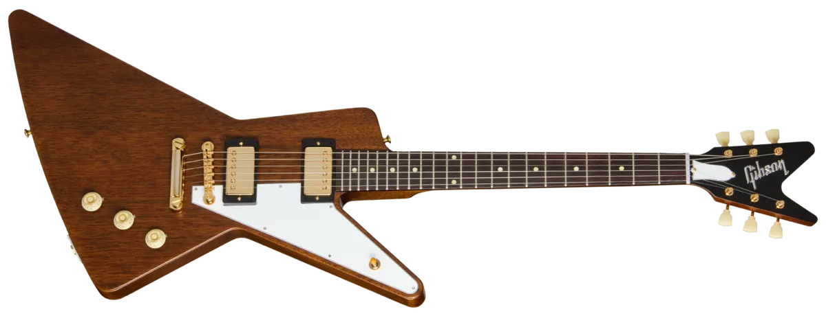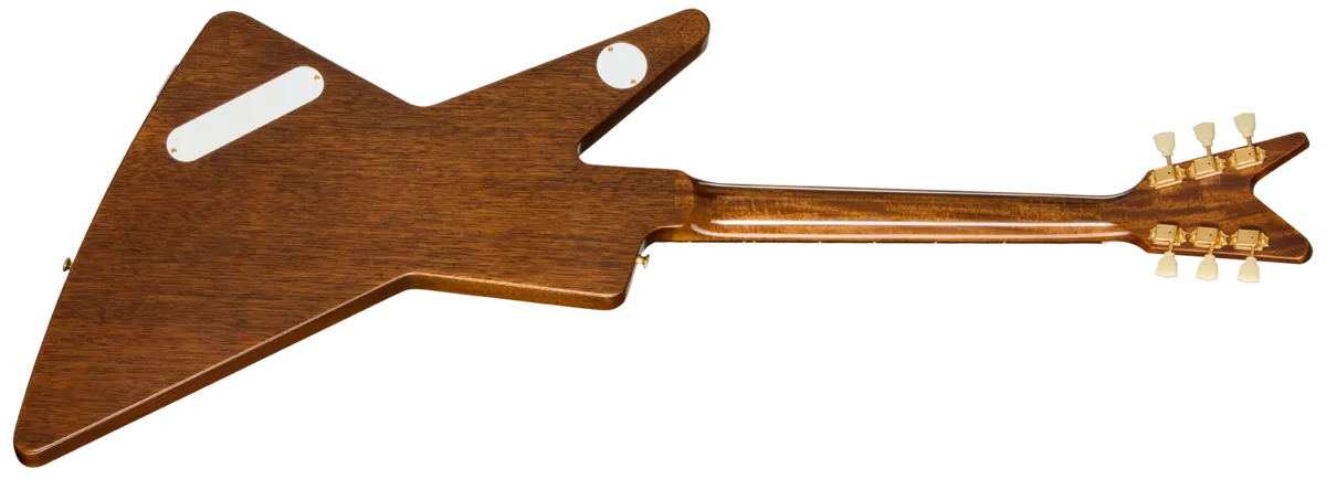 When Gibson designed a new trio of futuristic-looking guitars in 1957 to bring fresh, modern-looking designs to the product lineup, one of them was the Futura T™ , which was designed alongside the Flying VM and Moderne ™. While many guitarists may have never heard of the Futura, most are no doubt familiar with its direct descendant, the guitar it evolved into: the Explorer™. The Futura closely resembles the modern Explorer, but had a somewhat different, more angular body shape and a split V headstock design that was used on only a handful of the earliest Explorers before they transitioned to the scimitar-shaped headstock that the model is known for today. The Futura was never actually released in the late 1950s, with only a handful of prototypes made in that era, and only a few ever making it out into the wild, making them exceptionally rare, surpassed in rarity only by the Moderne, of which no authentic 50s era examples have ever been located and authenticated. While the earliest Flying V and Explorer models that were released in 1958 featured Korina bodies, the earliest Futura prototypes were made from mahogany. Mahogany has a somewhat warmer sound than the brighter Korina. Mahogany is also a more readily available wood than the scarcer Korina, and an ideal choice for modern players who prefer a denser, all-mahogany tone for rock and metal. Now, Gibson Custom is very proud to introduce the 1957 Mahogany Futura Reissue, a faithful reproduction of those rare 50s era Futura prototypes. It features a mahogany body with the original Futura shape made to vintage specifications, a mahogany neck with a 50s Vintage profile, and the original Futura split V headstock design, complete with reissue Kluson® single-ring tuners. The unbound Indian rosewood fretboard is equipped with 22 reissue frets and cellulose dot inlays. The 1957 Mahogany Futura Reissue is powered by two unpotted Custombucker humbucker™ pickups with Alnico 3 magnets that are hand-wired to two volume and one tone control with CTS® potentiometers and a phone book tone capacitor. The Antique Natural nitrocellulose lacquer and gold hardware are VOS-finished, giving it the look of a new-old-stock guitar from the late 1950s. A Lifton ™ historic reissue brown and pink hardshell case is also included. Here's your chance to own an authentic recreation of one of the rarest models in Gibson history.