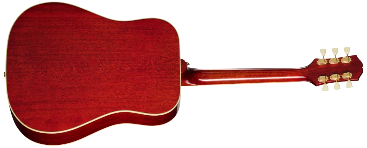 The Hummingbird™ is one of the most instantly recognizable and remarkable acoustic guitars ever built. First released by Gibson in 1960, it was their first square shoulder acoustic dreadnought model. The stylish and versatile Hummingbird was quickly and enthusiastically embraced by numerous musicians across a wide range of genres. Now, Epiphone is proud to introduce a newly updated Hummingbird Standard as part of the Inspired by Gibson Collection, which delivers high-quality versions of classic Gibson models at accessible prices.The Hummingbird Standard is crafted using all solid tonewoods, so the tone will continue to improve as the guitar ages. The back and sides of the body are made of solid mahogany, while the top is crafted from solid spruce, for the classic tonewood recipe that has made the sound of the Hummingbird iconic. The neck is also made from one piece of solid mahogany, and is now equipped with a genuine rosewood fretboard with 20 standard frets and classy-looking mother-of-pearl split parallelogram inlays, one of the visual hallmarks of the classic Hummingbird design. The neck has a comfortable Rounded C profile and is glued to the body and attached with a tapered dovetail joint. The 60s Kalamazoo headstock is adorned with the Epiphone logo and Gibson crown inlaid in mother-of-pearl and equipped with a bone nut and high-quality Epiphone Deluxe tuners with a gold finish and Keystone buttons, ensuring solid, stable tuning. Other classic Hummingbird features include an epoxy-style tortoise Hummingbird pickguard with iconic graphics, a reverse belly rosewood bridge with a bone saddle and ivory plastic bridge pins, and a beautiful Cherry sunburst finish.The Hummingbird Standard comes with Fishman ™ electronics, including an S-Core under-saddle pickup and Fishman Presys VT preamp with soundhole-mounted volume and tone controls that are fast and easy to access for the player while remaining nearly invisible to the audience. It comes packaged in an Epiphone premium gig bag to help keep it safe, and for easy grab-and-go transport to wherever your music takes you.