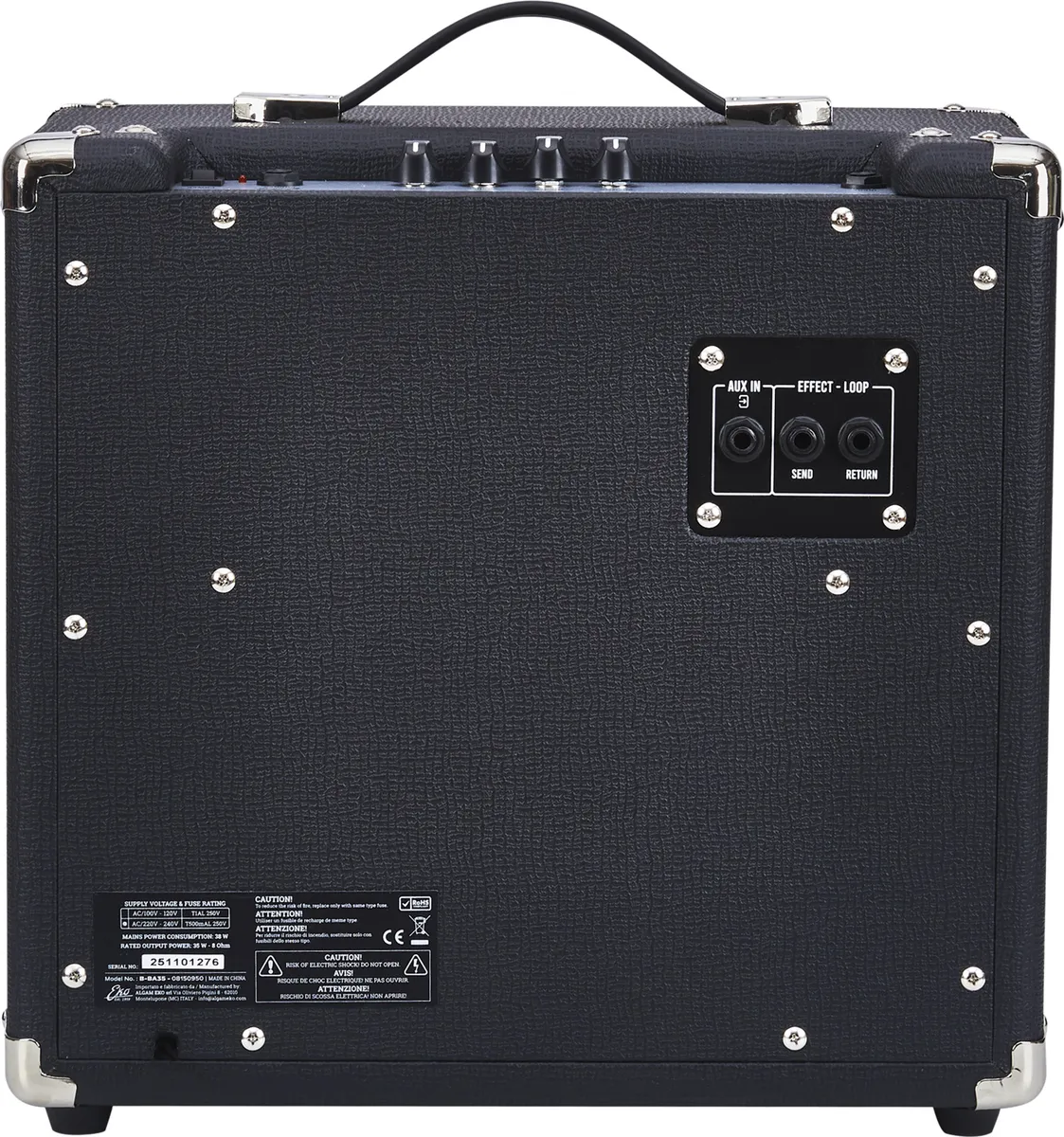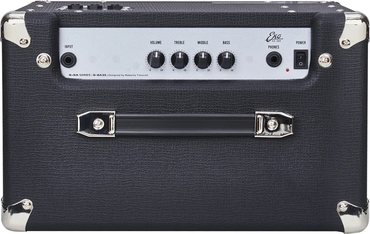 An ideal combo for playing at home and rehearsing!This small 35W transistor combo, developed by Italian brand Eko in partnership with technician Roberto Tittarelli, is the ideal companion for any bassist who wants a small, effective amplifier for practicing at home without upsetting their partner or neighbors. Its modest weight of around 10 kg makes it a portable amp, perfect for small rehearsals too.A complete interface!Don't let the size of this little combo fool you into underestimating its capabilities! It features a volume control and 3-band EQ for precise adjustment of the final sound. In addition to its jack input for bass, it has an auxiliary jack input so you can play along to your favorite tracks, as well as an effects loop so you can integrate your favorite effects pedals to enrich your bass sound. Finally, this amp includes a headphone output so you can practice discreetly if necessary.Compact and efficient, the B-BA35 is the ideal bass combo for any bassist looking for an amp to practice at home or for small rehearsals, offering excellent value for money.