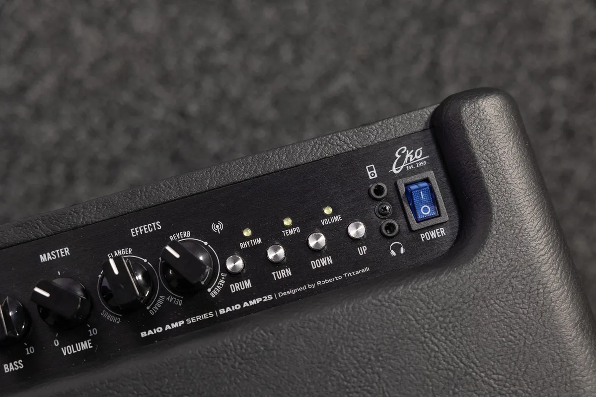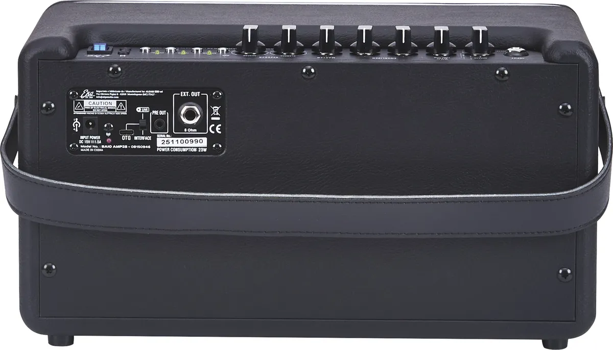 A compact amplifier version of the "All-in-One Box"!The BAIO Amp 25, or "All-in-One Box," delivers 25 watts of power through two 5-inch speakers for precise and dynamic stereo sound. Its eight legendary amp models cover a wide range of sounds, from bright clean tones to the most powerful high-gain saturations, allowing you to adapt to any style. If you want to enrich your sound and inspiration, the two built-in effects sections are easily accessible (vibrato, chorus, flanger, as well as delay, reverb, and delay + reverb combination). A real creative asset, its built-in electronic drum module with rhythm, tempo, and volume controls transforms every session into a real training ground or source of inspiration.A complete and modern connectivity!Designed for modern guitarists, the BAIO Amp 25 offers complete connectivity: an auxiliary input for playing along to your favorite songs, a headphone output for discreet practice, and Bluetooth for wireless audio streaming. Its external speaker output and preamp output expand the possibilities for both rehearsal and recording. It features a USB-C port that allows it to be used as an audio interface for direct recording to a computer. Powerful, versatile, and fully connected, it is the ideal all-in-one solution for playing, creating, and recording without constraints.
