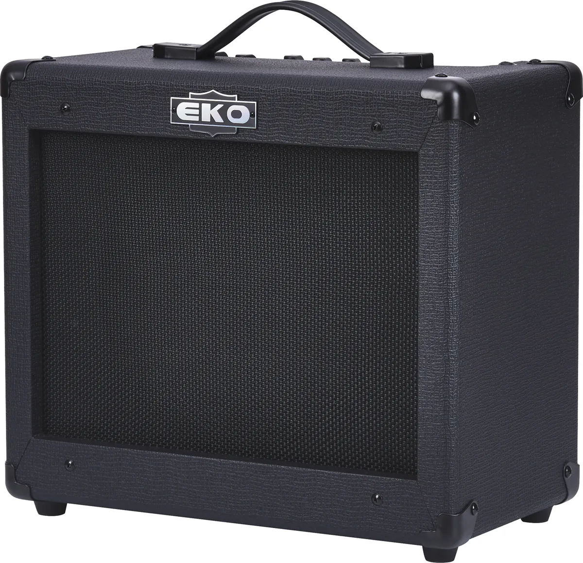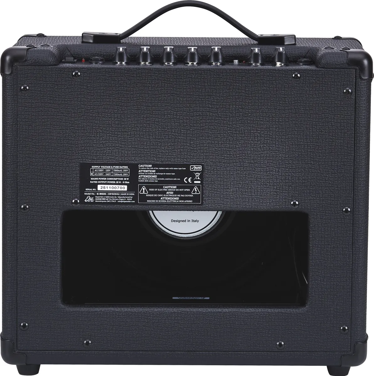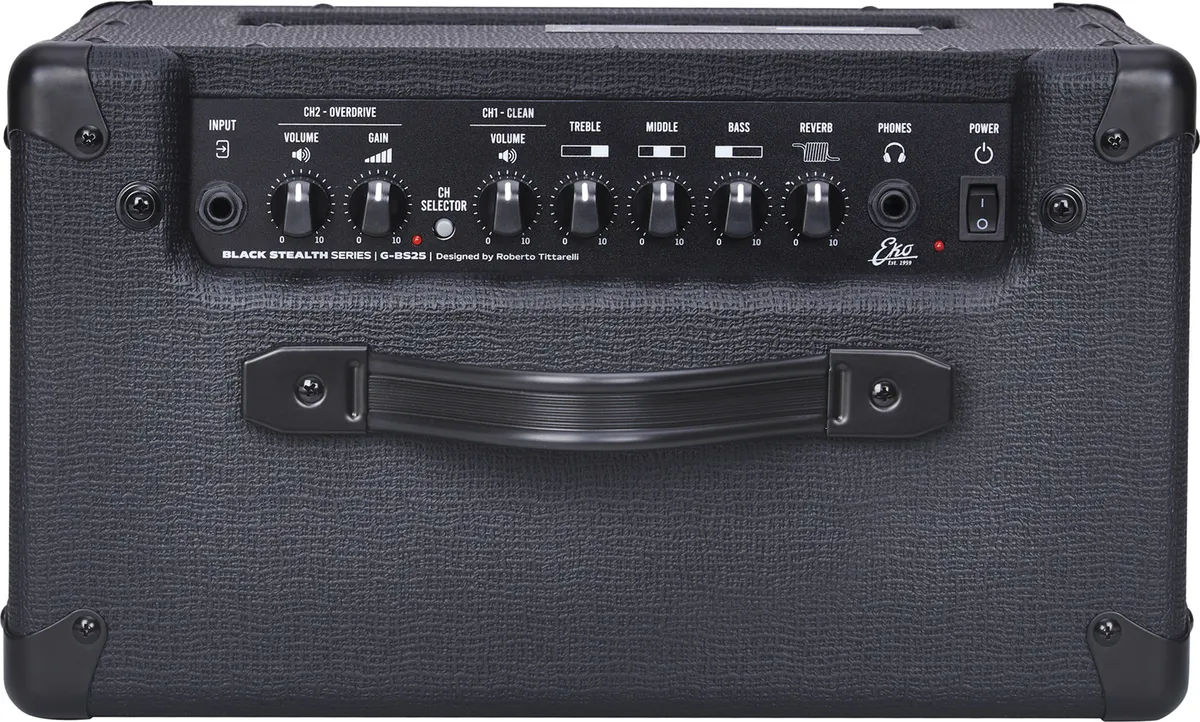 A compact format!The G-BS25 was developed by Eko, in partnership with technician Roberto Tittarelli, to offer guitarists a compact transistor combo for practicing electric guitar. This combo delivers 25W through a 10-inch speaker and allows you to explore a variety of sounds and musical styles thanks to its two channels (clean and drive) selectable via a switch, for clear or more saturated sounds. The reverb effect is very useful for adding depth to your sound.Simple but versatile!The G-BS25 features a simple but versatile interface: a volume control for the clean channel, complemented by a classic three-band EQ, and gain and volume controls for the overdrive channel. A switch allows you to select the desired channel, but this can also be done via the footswitch input (not included). In addition to the guitar input, this small amplifier includes an auxiliary input for playing along with your favorite songs, as well as a headphone output for discreet practice when needed. Finally, an effects loop also allows you to insert your guitar effects pedals to enhance your sound.Compact and portable at 7.8 kg, the G-BS25 is a versatile guitar combo for beginner or experienced guitarists looking for an amplifier for home use or small rehearsals at a reasonable price.