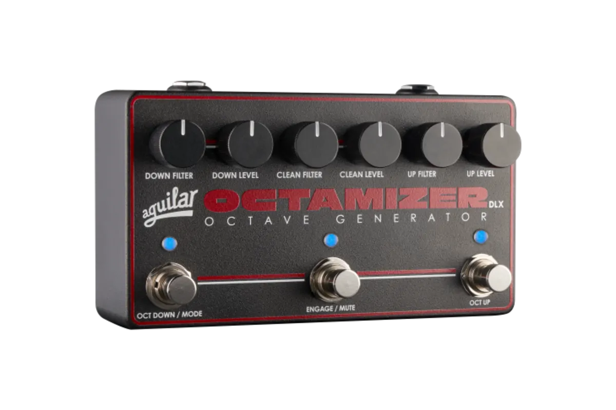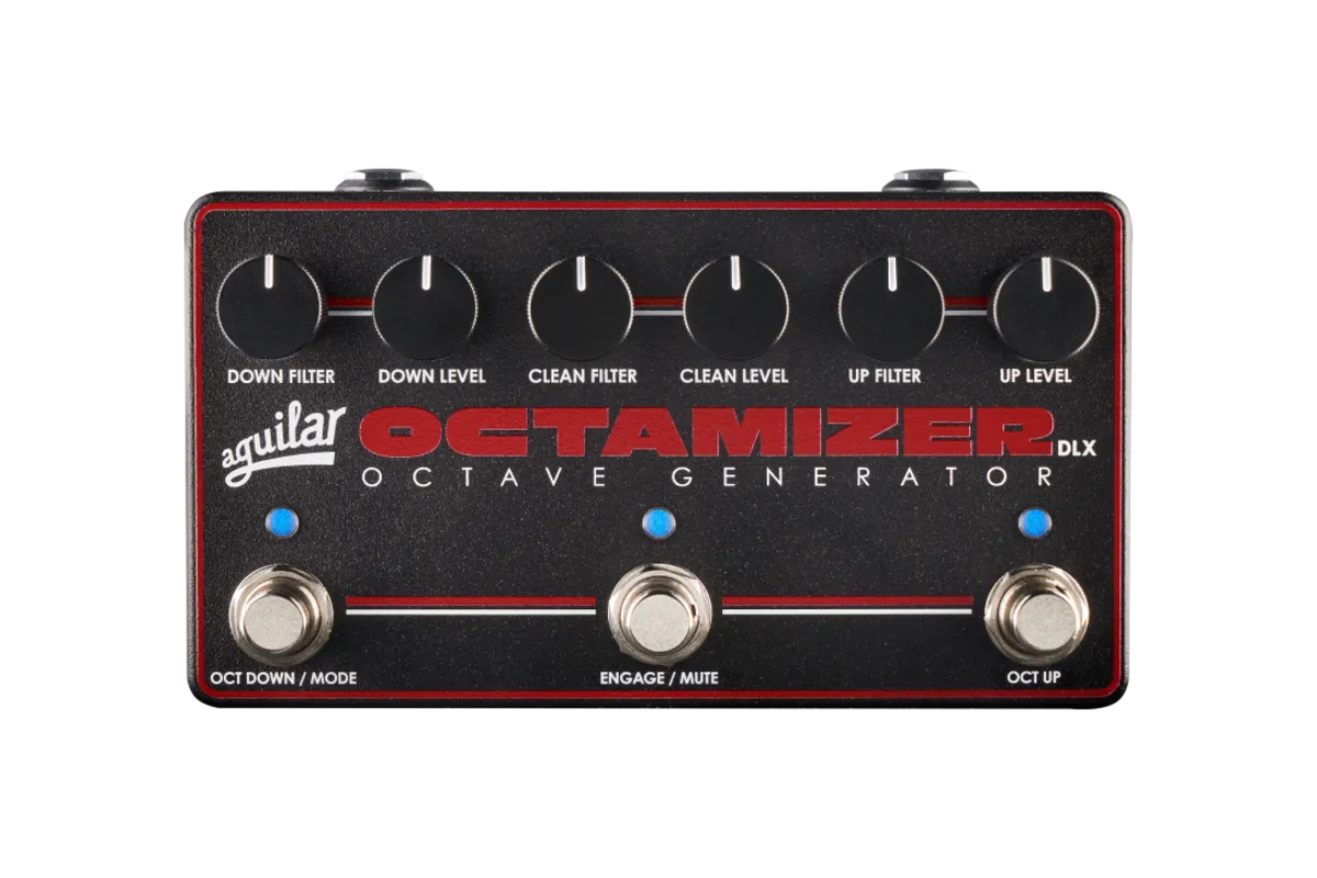 Expanded Voices. Precision Tracking. Total Performance Control. The Octamizer DLX is Aguilar's most powerful bass octave pedal to date, combining the musical feel and tone of the original Octamizer with expanded octave voices, advanced tracking, and flexible footswitch control for modern bass performance. Designed for stage and studio use, it delivers deep octave-down foundation, expressive octave-up harmonics, and fast, stable tracking that responds naturally to your playing dynamics—even on extended-range basses. • Multiple octave down filter modes plus dedicated octave up • Three independent footswitches for instant voice stacking • Improved tracking across the full range of the instrument • Designed specifically for bass guitar-no compromises