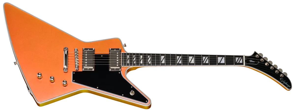 The new Futura Series guitars from Epiphone are designed for today's guitarists who want an instrument that delivers professional performance and forward-thinking features. These Inspired by Gibson models deliver tone and style that's perfect for gigging, recording, or content creation in the modern era. With bold, color-shifting finishes, all-new pickups, and versatile electronic features like coil splitting and phase switching, they have the look and sound that today's players need to stand out from the crowd and make their own statement, both sonically and visually. Other high-performance features, including stainless steel frets, compound-radius fretboards, and ultra-comfortable neck profiles, make the Futura Series guitars truly innovative and a must-have addition for any guitar collection.The Gibson ES-355M has been a favorite among players for decades, and Epiphone is proud to introduce the Futura ES-355—a contemporary interpretation of the legendary semi-hollow design first introduced in 1958. This model features a solid maple centerblock with a weight-relief window, enhancing sustain and reducing feedback while keeping the guitar lightweight and comfortable. A LockTone ™ Tune-O-Matic ™ bridge and LockTone Stop Bar tailpiece provide rock-solid intonation and sustain, while Posi-Lok™ strap buttons keep your strap secure without additional hardware. The mahogany neck sports a fast-playing Modern C profile and a bound ebony fingerboard with 22 stainless steel medium jumbo frets and elegant Super 400-style pearloid split block inlays. A 10"-14" compound radius ensures smooth chording and effortless bends. The 5-ply bound Kalamazoo headstock is fitted with locking Grover® Rotomatic® tuners, a Graph Tech® nut, and mother-of-pearl Epiphone and Custom split diamond inlays.The Futura ES-355 is powered by a pair of Epiphone's new ProBucker™ Ignite humbuckers T™, delivering dynamic, articulate tone with plenty of clarity. Push/pull volume and tone controls unlock coil-splitting and phase options for maximum versatility. Available in three stunning Chromashift finishes-Firestorm Shift, Dragonfly Shift, and Midnight Ember Shift-this guitar is designed to make an impression on stage or on screen. Whether you're after a modern aesthetic, a wide tonal palette, or a high-quality semi-hollowbody, the Futura ES-355 is ready to inspire. Each one ships with a premium gig bag, so it's prepared to go wherever your music takes you.