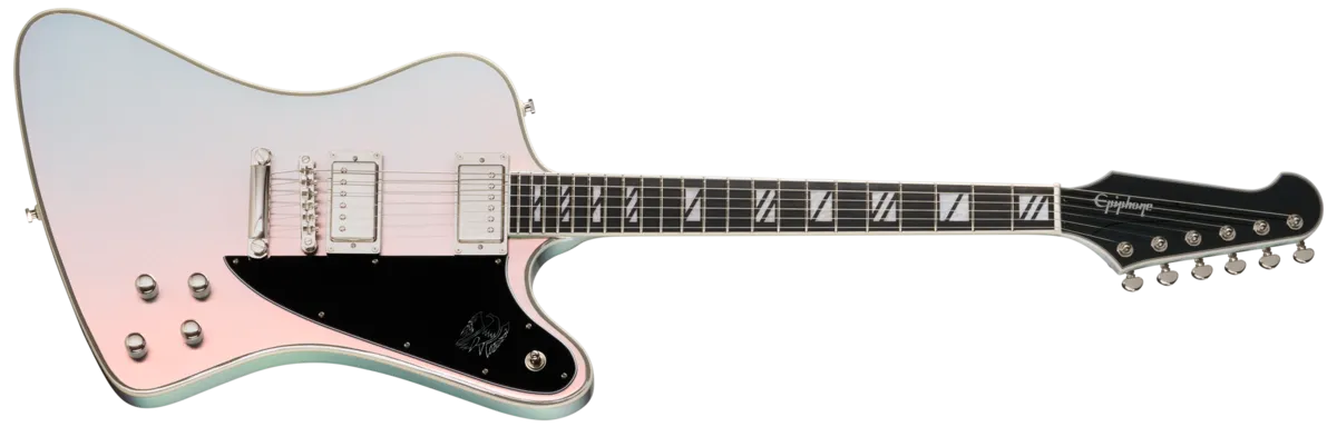 The new Futura Series guitars from Epiphone are designed for today's guitarists who want a guitar that delivers professional performance and forward-thinking features. These Inspired by Gibson models deliver tone and style that's perfect for gigging, recording, or content creation in the modern era. With bold, color-shifting finishes, all-new pickups, and versatile electronic features like coil splitting and phase switching, they have the look and sound that today's players need to stand out from the crowd and make their own statement, both sonically and visually. Other high-performance features, including stainless steel frets, compound-radius fretboards, and ultra-comfortable neck profiles, make the Futura Series guitars truly innovative and a must-have addition for any guitar collection.The Gibson Firebird ™ remains one of the most iconic and instantly recognizable shapes in the electric guitar world. Originally conceived by legendary automotive designer Ray Dietrich, its bold lines drew inspiration from classic car styling and the Gibson Explorer™ • Epiphone proudly introduces the Futura Firebird Custom—a modern interpretation of a design that was revolutionary when it debuted in 1963. Its sculpted mahogany body features elegant 7-ply top binding and a contoured back for enhanced comfort. A LockTone ™ Tune-O-Matic ™ bridge and LockTone Stop Bar tailpiece deliver rock-solid intonation and sustain, while Posi-Lok T™ strap buttons keep your strap secure without extra hardware. The glued-in mahogany neck sports a fast-playing Modern C profile and a bound ebony fingerboard with 22 stainless steel medium jumbo frets and striking Super 400-style pearloid split block inlays. A 10"-14" compound radius ensures smooth chording and effortless bends. The bound Reverse Firebird headstock is fitted with locking Grover® Mini Rotomatic® tuners, a Graph Tech® nut, and a Firebird truss rod cover bearing the Epiphone logo.Powering the Futura Firebird Custom are a pair of Epiphone's new ProBucker™ Ignite humbuckers TM , delivering punchy, articulate tone with plenty of headroom. Push/pull volume and tone controls unlock coil-splitting and phase options for maximum versatility. Available in four stunning Chromashift finishes-Firestorm Shift, Quicksilver Shift, and Midnight Ember Shift-this guitar is designed to turn heads on stage or on screen. Whether you're after a modern aesthetic, a wide tonal palette, or an instrument that performs like a pro, the Futura Firebird Custom is ready to elevate your music. Each one ships with a premium gig bag, so it's prepared to go wherever your creativity takes you.