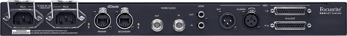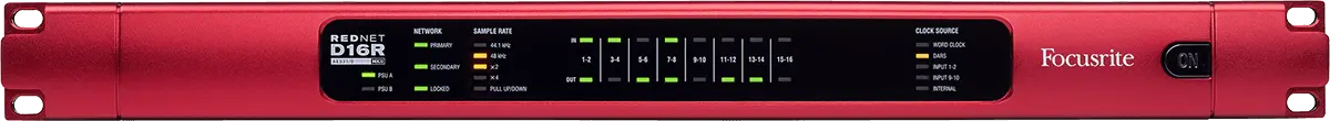 The RedNet D16R MkII is a 16-channel bi-directional AES3 interface for Dante® networks. The 1U rackmount device features individual input and output channel level controls, allowing for precise calibration and control of all input and output levels using RedNet Control. RedNet D16R MkII features power supply and Ethernet redundancy with auto switchover in case of failure.