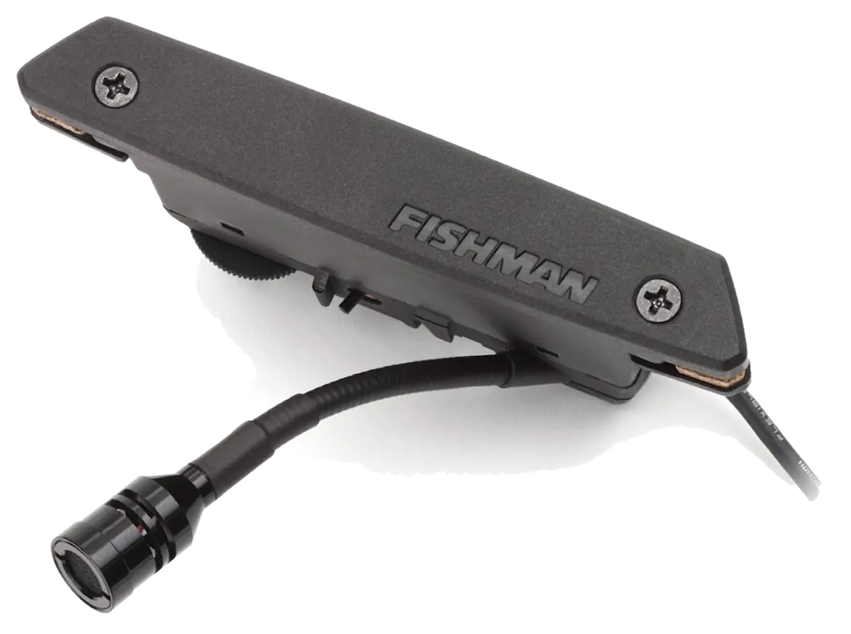 A new and improved flexible cardioid microphone and microphone bass extension/roll-off switch are the latest updates to this popular active soundhole pickup. The easily accessible Mic/Pickup Blend control offers just the right blend at your fingertips.