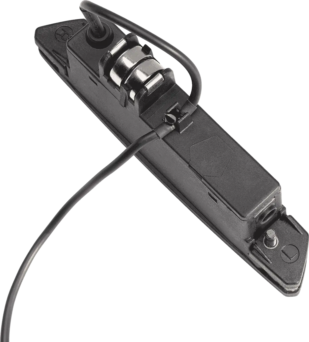 Miniature batteries mount conveniently on the underside of the pickup (batteries included)