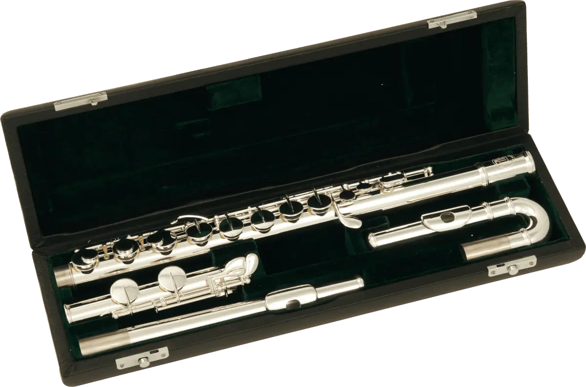 Nickel-silver, silver plated. Comes with straight and curved headjoints.