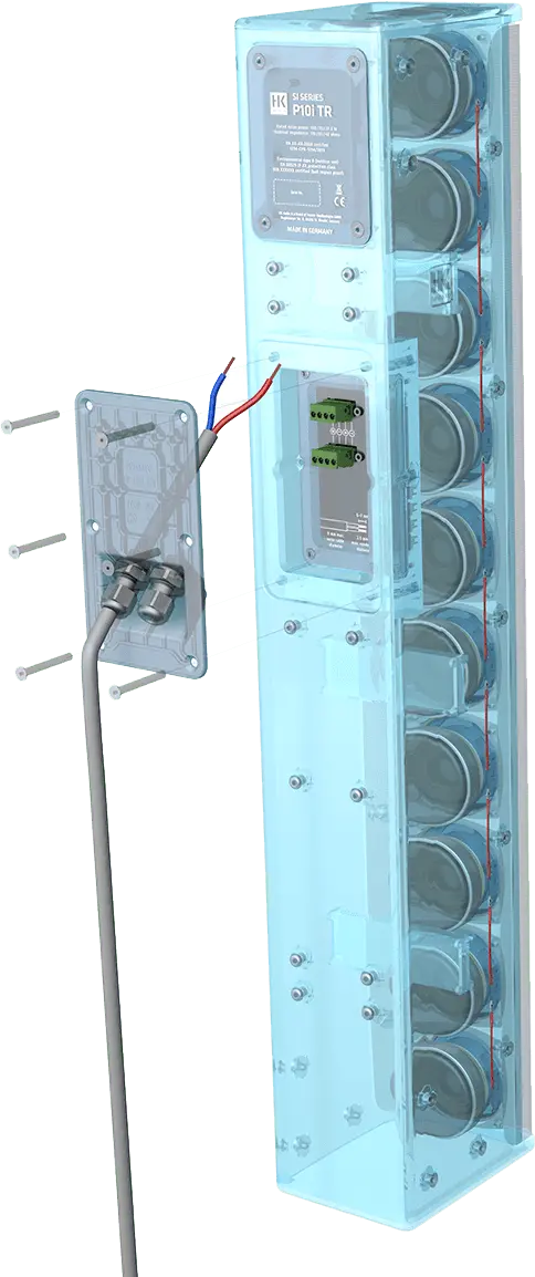 Professional column loudspeaker for installations with a closed cabinet, loaded with 10 x 3“ fullrange drivers with 600 W program power rating. Extensive mounting accessories for outdoor and indoor installations and very high max. sound pressure level for demanding environments. Symmetrical directivity, combinable with SI SERIES P10j for precise coverage for difficult rooms or for outdoor long-throw applications.