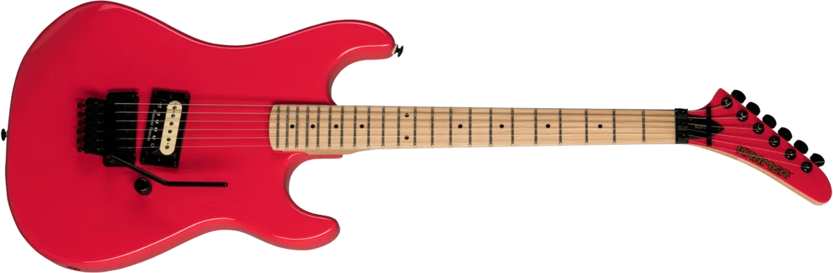 The Baretta Vintage features a Floyd Rose® 1000 Series Tremolo along with a R2 Lock Nut for rock solid tuning and intonation. For easy adjustments, two hex wrenches are fastened to the back of the headstock. Black Kramer black die-cast machine heads with a 14:1 tuning ratio make tuning fast and accurate.