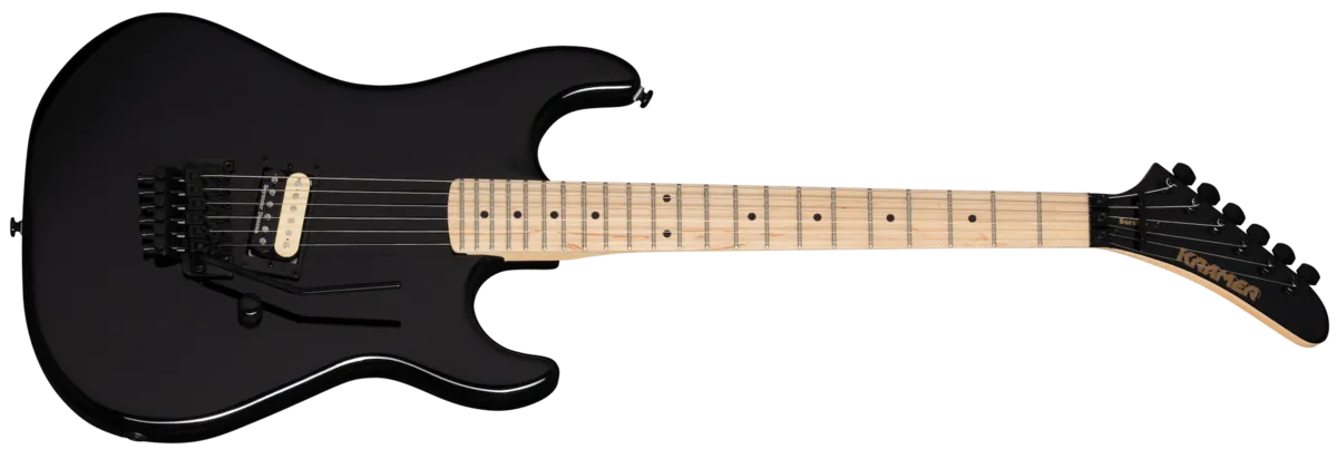 The Baretta is part of the Kramer Original Collection and is a tribute to one of the most iconic and original guitar designs in rock. Featuring a maple body, hard maple neck with a fast-playing satin finish, a single Seymour Duncan® JB™ zebra-coil humbucker, and a Floyd Rose® 1000 series tremolo with an R2 1000 series locking nut. Available in Ebony, Jumper Red, and Bumblebee Yellow.