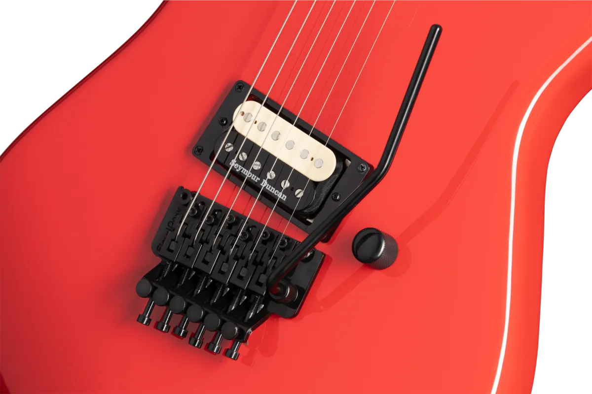 The Baretta is part of the Kramer Original Collection and is a tribute to one of the most iconic and original guitar designs in rock. Featuring a maple body, hard maple neck with a fast-playing satin finish, a single Seymour Duncan® JB™ zebra-coil humbucker, and a Floyd Rose® 1000 series tremolo with an R2 1000 series locking nut. Available in Ebony, Jumper Red, and Bumblebee Yellow.