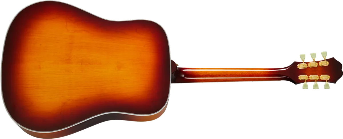 The Masterbilt Series presents a recreation of the rare Epiphone Frontier. Featuring a Solid Sitka Spruce top with the iconic “Rope and Cactus” pickguard, bone nut, and the state-of-the-art Fishman™ Sonitone™ Onboard Preamp System for true acoustic tone when plugged in. Available in Ice Tea Aged Gloss finish. Featuring Gibson Strings.
