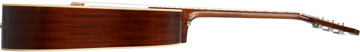 The guitar that inspired two British Invasions joins the Masterbilt family! Based on the historic 60s Texan played by Paul McCartney and Peter Frampton. Featuring a Solid Sitka Spruce top, Solid Mahogany body, bone nut and saddle, and the Fishman Sonitone OEM pickup system. Includes vintage style blue rectangle sound hole label. Available in Antique Natural Aged and Faded Cherry Aged finish. Featuring Gibson Strings.