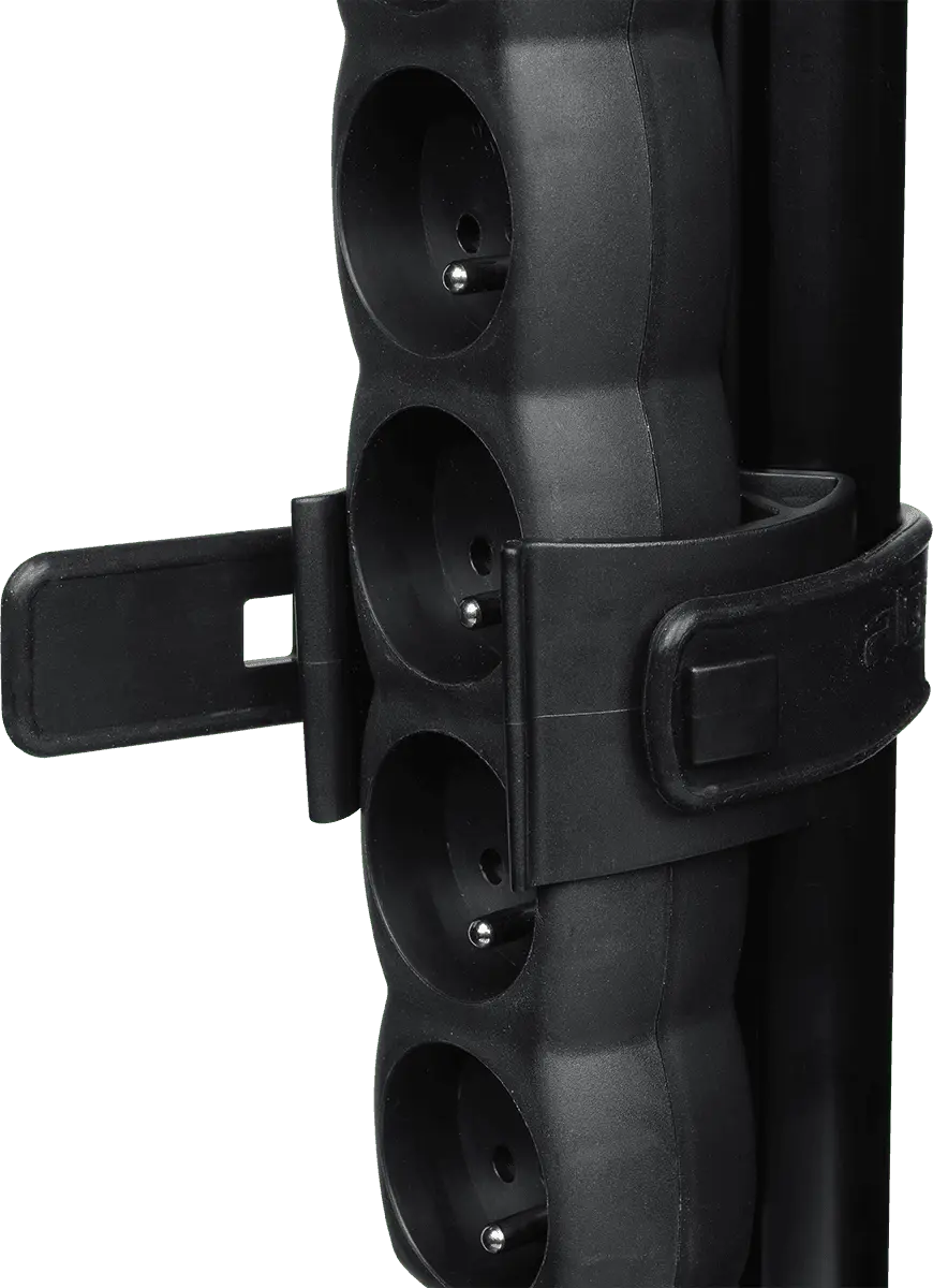 This fastening system for multi-plug extension leads fits all structures thanks to its rubber strip and its 4 levels of tightening. It allows you to attach your equipment wherever you want.