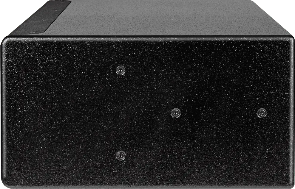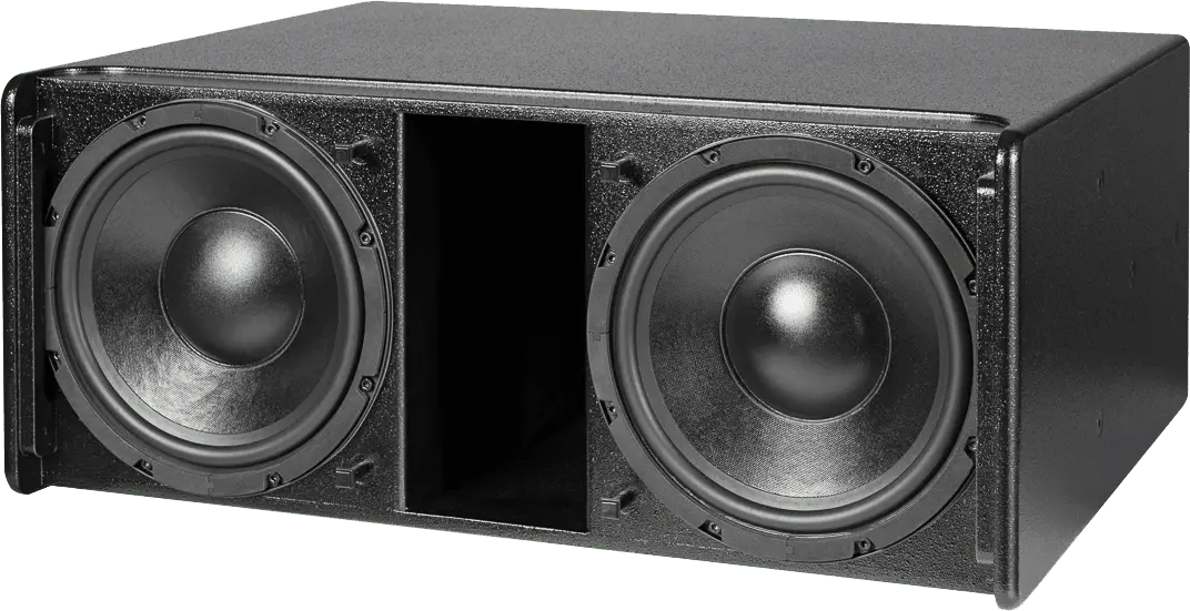 Passive high-performance subwoofer for installations, 1200 W (program), switchable impedance (4 ohms or 16 ohms), 2×10″ transducers and bass reflex port with exponential contour, 124 dB max. SPL (10 % THD), 44 Hz – 140 Hz (-10 dB), 2x 4-pin connectors, IP 44 rating