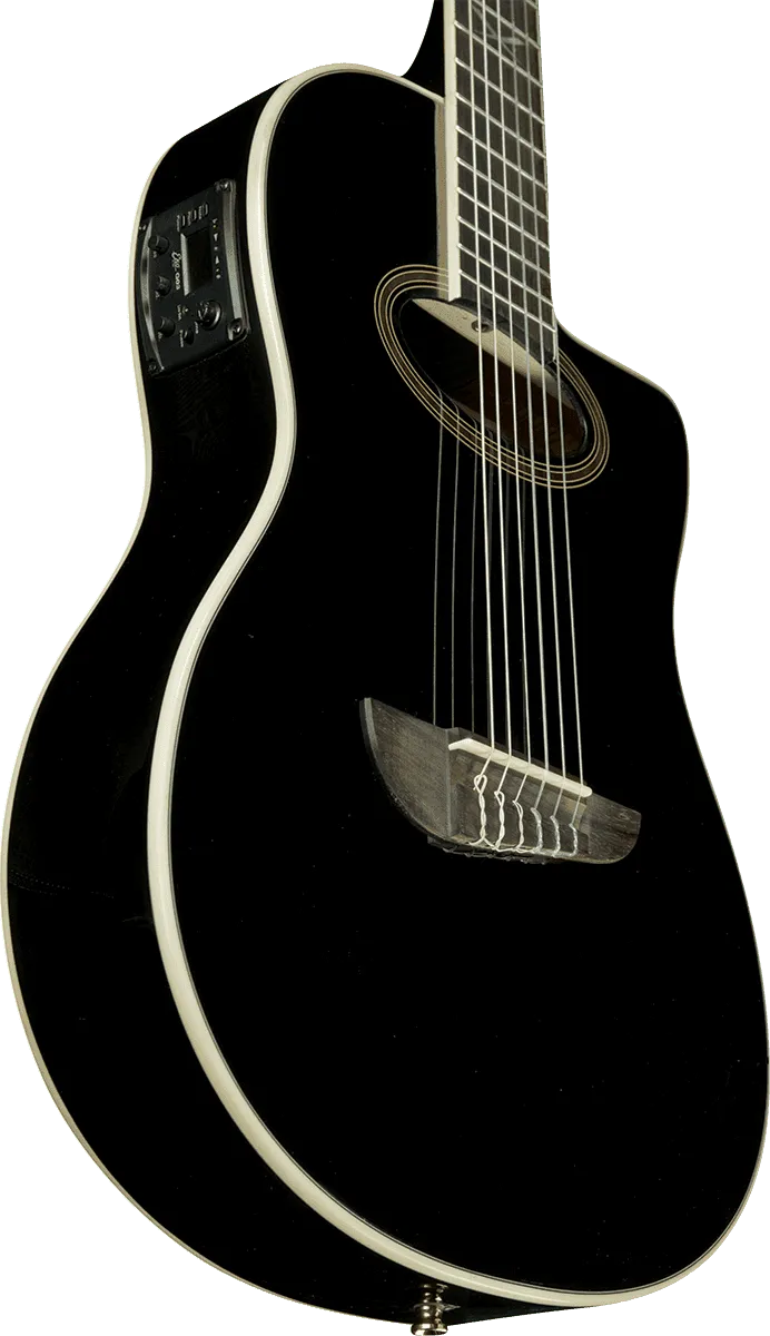 The NXT N100ce is an entry level Nylon guitar that comes with all you need to please your ears and eyes. Great sound and astonishing appearance. NXT Nylon is a mix between an Acoustic, a Gypsy and a Classical guitar: ready to be played standing in Live, with the neck joint at XIV fret to be easily played in the higher part of the neck.