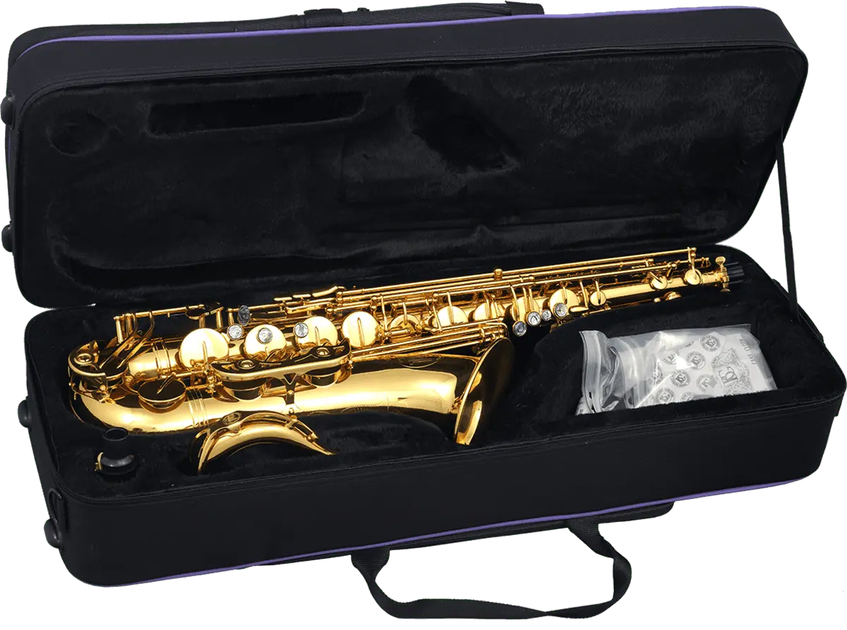 Bb, gold lacquered, engraved bell. 3 points Special SML connecting ring from bell to body. Adjustable screws on low keys.
