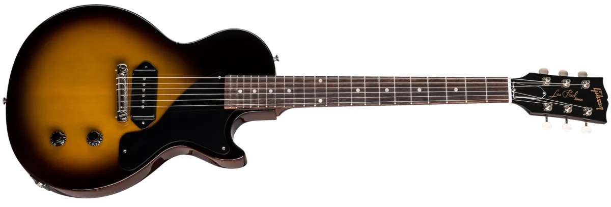 The Les Paul Junior returns to the classic design that made it relevant, played and loved -- shaping sound across generations and genres of music. It pays tribute to Gibson's Golden Era of innovation and brings authenticity back to life. Introduced as an affordable option for students and beginners in 1954, the Les Paul Junior has been embraced by musicians for over 60 years. The single cutaway slab mahogany body, single dogear P-90 pickup, single volume and tone controls all add up to a whole lot of guitar which is greater than the sum of its parts. The fat 50's-style neck profile and wraparound bridge add to the equation for rock solid tone. Available in Tobacco Burst and the new Ebony finish with tortoise shell pickguard.