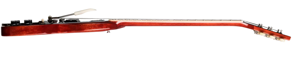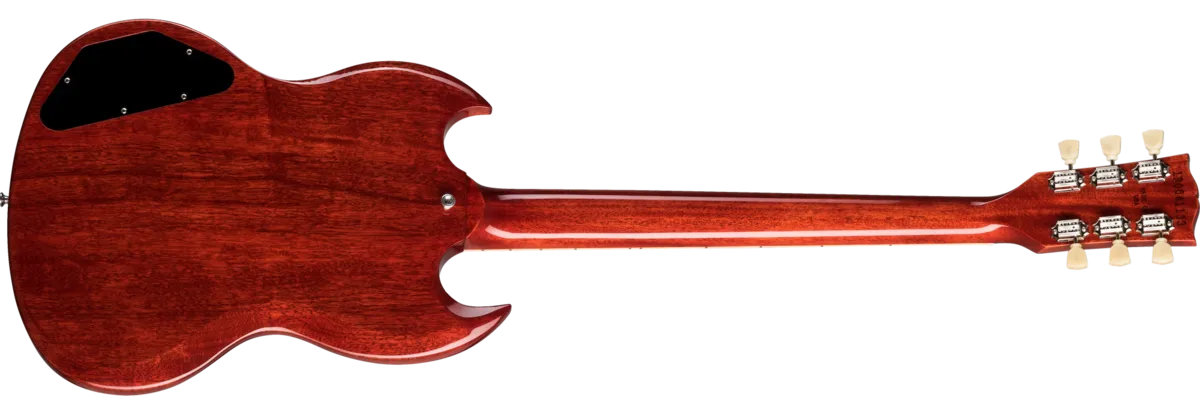 The SG™ Standard ‘61 Maestro™ Vibrola™ returns to the classic design that made it relevant, played, and loved -- shaping sound across generations and genres of music. As the name implies, the Gibson SG Standard '61 Maestro Vibrola adds vibrato capability to the SG Standard '61. The Maestro Vibrola offers smooth vibrato effects and the classic styling of the Lyre engraving on the tailpiece cover. Standard features include a SlimTaper™ mahogany neck and a bound rosewood fingerboard. The mahogany body features a deeply sculpted body scarfing, a 5-ply teardrop pickguard, and a 22nd-fret neck joint. The nickel-plated hardware includes a classic-style Tune-O-Matic™ bridge and Keystone tuners in addition to the Maestro Vibrola Tailpiece. The pickups are 60s Burstbucker™ humbuckers™ for a classic voice with added power and top end. Controls feature audio taper potentiometers and Orange Drop® capacitors.