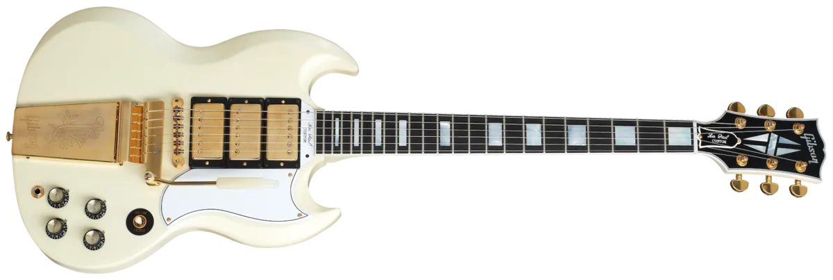The last year of the "Les Paul™" moniker on the SG™ Custom was also the first year of the Maestro™ Vibrola...1963. Gibson Custom Shop has proudly recreated this desirable version of the SG Custom down to the original construction methods and contours. The result is a beautiful, versatile and tremendous-sounding instrument that plays effortlessly. The solid ebony fingerboard and revamped vintage-style electronics help it attain new sonic heights with clarity and sustain. From the dimensions to the contours to the precise inlay patterns to the sonic experience, it's the top of the line SG in every respect!