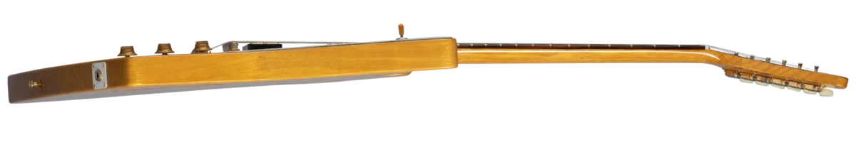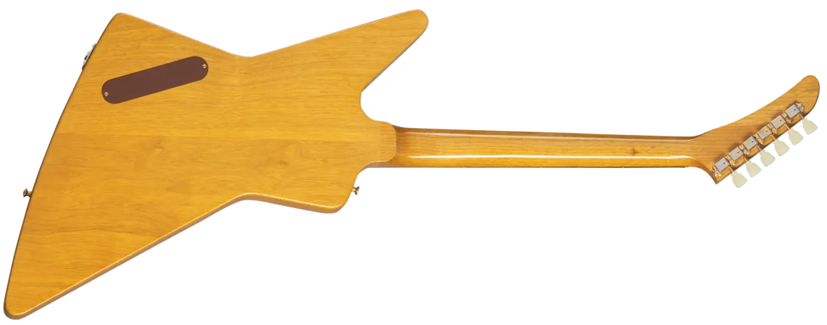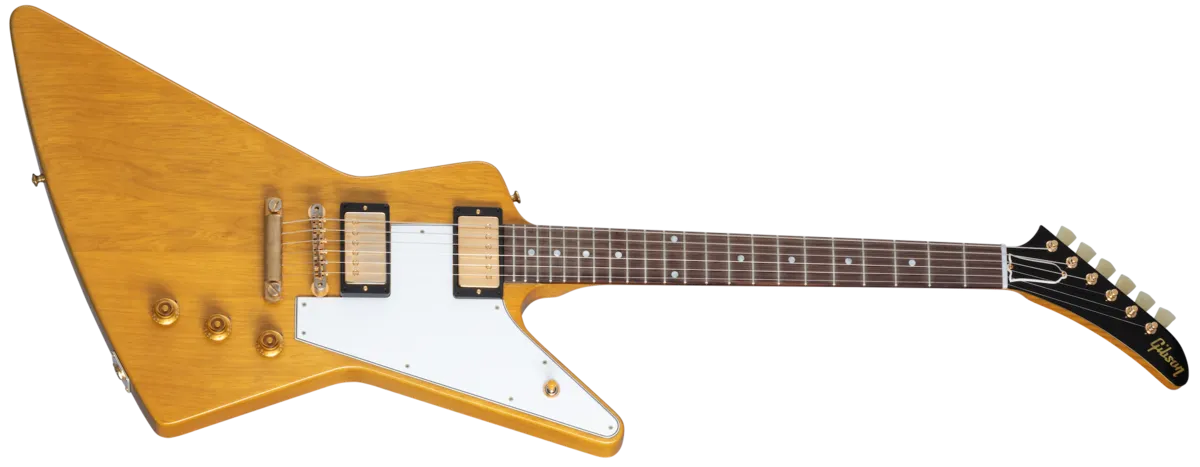 The Gibson Explorer™ was way ahead of its time when it was introduced in 1958, and only 19 were shipped that year, but it has become very popular in the years since then. The classic vintage Explorer features have been carefully recreated in this Historic Reissue model. Featuring an ABR-1 bridge and Stop Bar tailpiece, a Korina body, Custombucker pickups, Korina neck, Indian rosewood fretboard, two volume and one tone control with CTS® pots and a phone book capacitor, gold hardware, Kluson® tuners, and a 4-ply pickguard. A historically accurate case is included, with a classic brown exterior and plush pink interior.