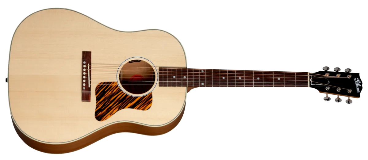 The J-35 evolved from the Jumbo in 1936, a time when the Great Depression was still wreaking havoc on Americans. Gibson developed the J-35 to be a pared-down model that still offered musicians a warm and balanced instrument. The J-35 30s Faded delivers every bit of the seasoned, vintage look, feel, and sound of our iconic J-35, with a satin nitrocellulose finish that only adds to its rich legacy and undeniable vintage vibe. Discerning flattop players will love the rich, full-bodied tone from this vintage-inspired, round-shoulder beauty, along with its superb playability and simple aesthetic charm. Includes a hardshell case.