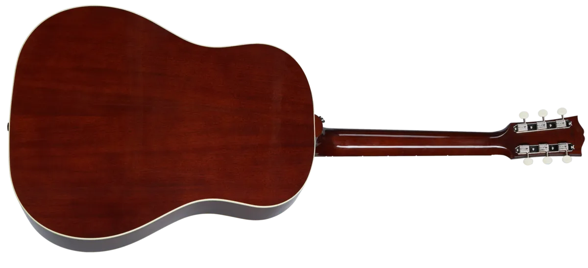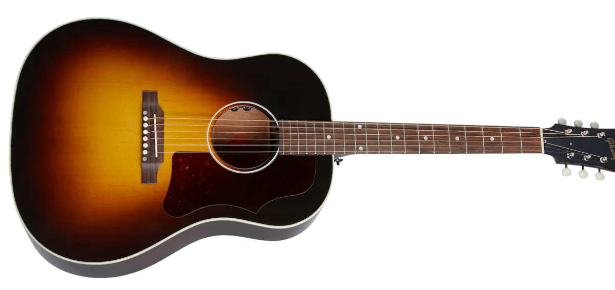 The new 50s J-45 Original model flaunts vintage-inspired detailing from the golden era of Gibson. Classic “Workhorse” materials include a Sitka Spruce top and Select Mahogany back and sides. The multi-ply top and single-ply back binding are subtly antiqued making each instrument look just like a seasoned Gibson acoustic. Appointed with cream button tuners, a 50s-era tortoise pick guard, and upgraded with an LR Baggs® VTC pickup for the best and most natural-sounding tone when amplified.