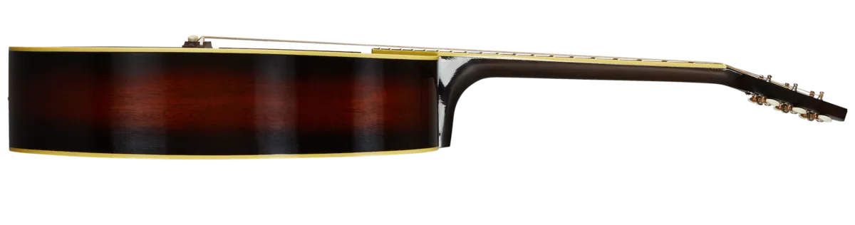 The guitar that started the legacy of Gibson Jumbo acoustics. When Gibson released the Jumbo in 1934, it was larger than any other guitar Gibson offered, and it made for a remarkable instrument. Only built for two production years, these rare instruments quickly became artist favorites and best represent the Gibson sound heard by world-renowned artists and collectors. Thoughtfully recreated with a Thermally Aged Adirondack red spruce top, hot hide glue top bracing, mahogany back and sides, traditional 25' scale length, and a historic-style V neck profile, the Gibson Acoustic Custom Shop is proud to bring back a legend, the 1934 Jumbo.