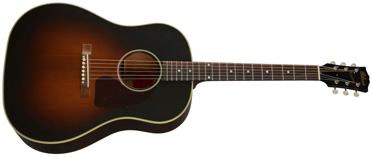 The allure and legend of the Gibson J-45 lives on in the new Custom Historic 1942 Banner J-45. Inspired by the holy grail of vintage acoustic instruments, luthiers in Montana meticulously crafted a J-45 just like the most popular and celebrated version in structure and components. The new 1942 Banner J-45 includes a Thermally Aged Adirondack red spruce top hand-sprayed with a historic-style burst, hot hide glue top bracing for better tonal response, and a bone nut and saddle.