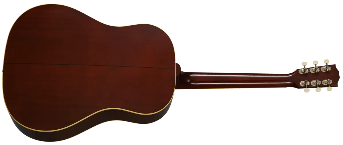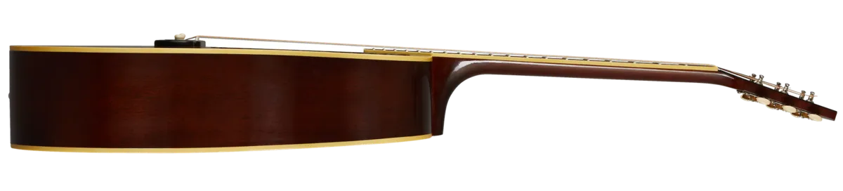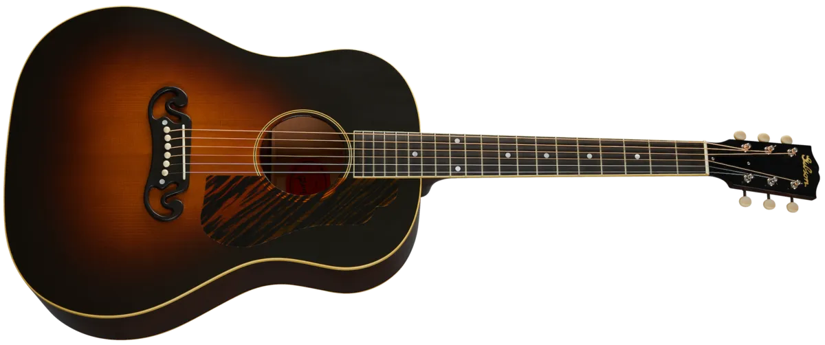 When it was released, the J-55 carried on the tradition of Gibson round-shoulder acoustic instruments. It was one of four Jumbo guitars offered by Gibson in the 1930s, becoming extremely sought after decades after its original release. The new Custom Shop 1939 J-55 features premium ebony on the fingerboard and bridge, a long-scale neck, and a thermally aged Adirondack red spruce top. Distinctive custom additions include a Moustache™ bridge, terraced fire stripe pickguard, and a wide 1.77" nut width.