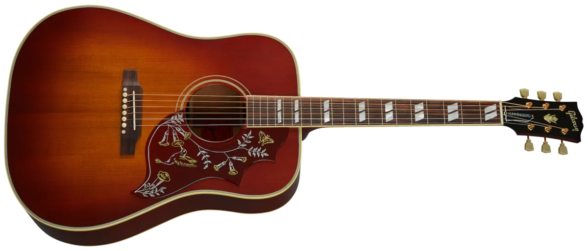 Introduced in 1960 as Gibson’s first square-shoulder, the Hummingbird™ arrived at the dawn of a new era in music and was rapidly embraced by the prime movers on the scene. Built with a thermally aged Sitka spruce top, the 1960 Hummingbird reflects the appearance and performance of those early icons. Featuring a fixed bridge, it's finished with Gibson's new Thin Finish, including a hand-rubbed VOS process.