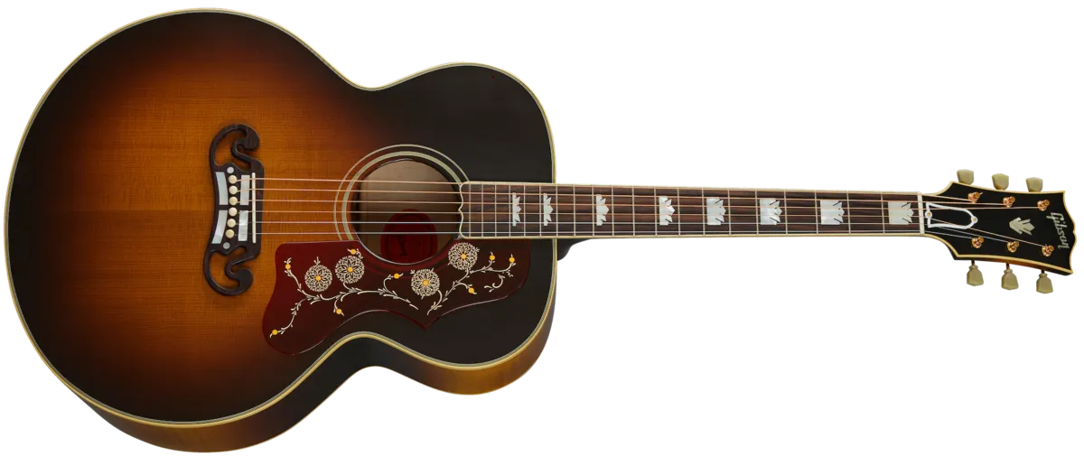 The King of the Flat-tops, with the vintage vibe and feel from the era that gave birth to some of the most prized Gibson Acoustic instruments. This new Custom Shop 1957 SJ-200 offers details such as hand-selected maple for the back and sides, a headstock stinger, and our thermally aged top for the full vintage effect.