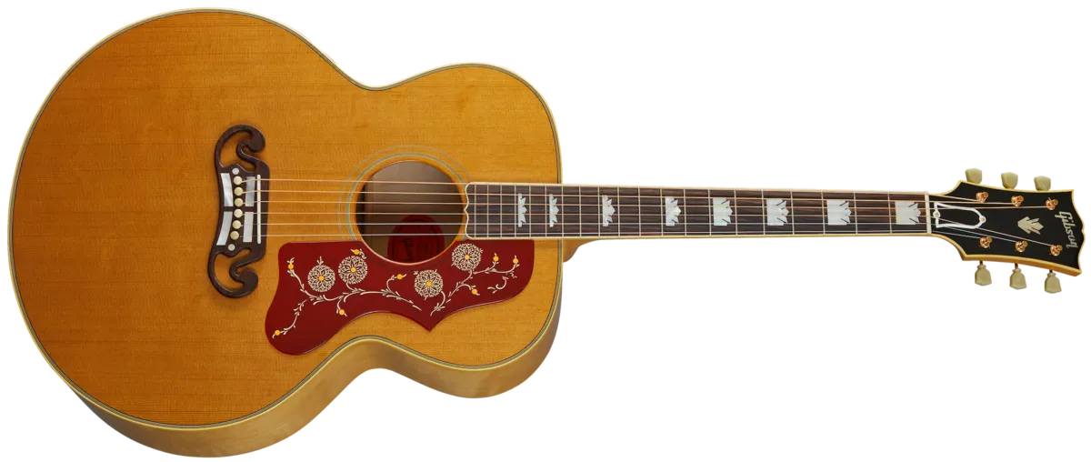The King of the Flat-tops, with the vintage vibe and feel from the era that gave birth to some of the most prized Gibson Acoustic instruments. This new Custom Shop 1957 SJ-200 offers details such as hand-selected maple for the back and sides, a headstock stinger, and our thermally aged top for the full vintage effect.