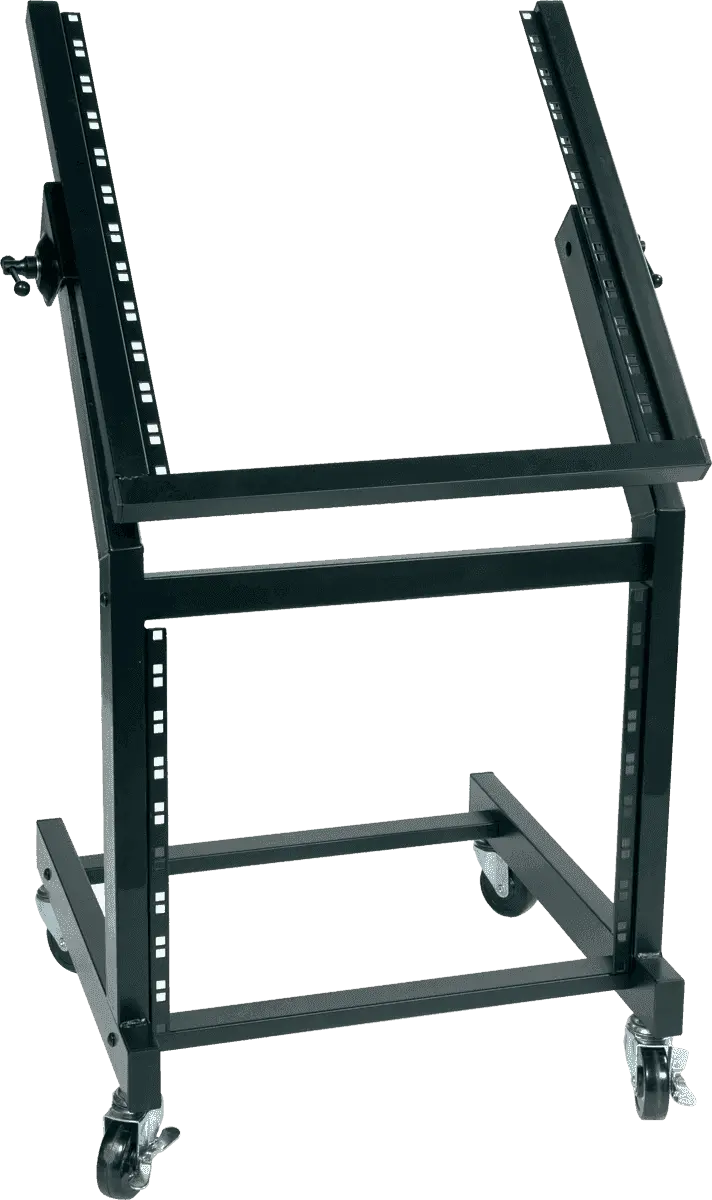 A robust rack for all your outboard gears. The base has 9U space and the tilted top fits 12U. The rack has 4 lockable wheels.