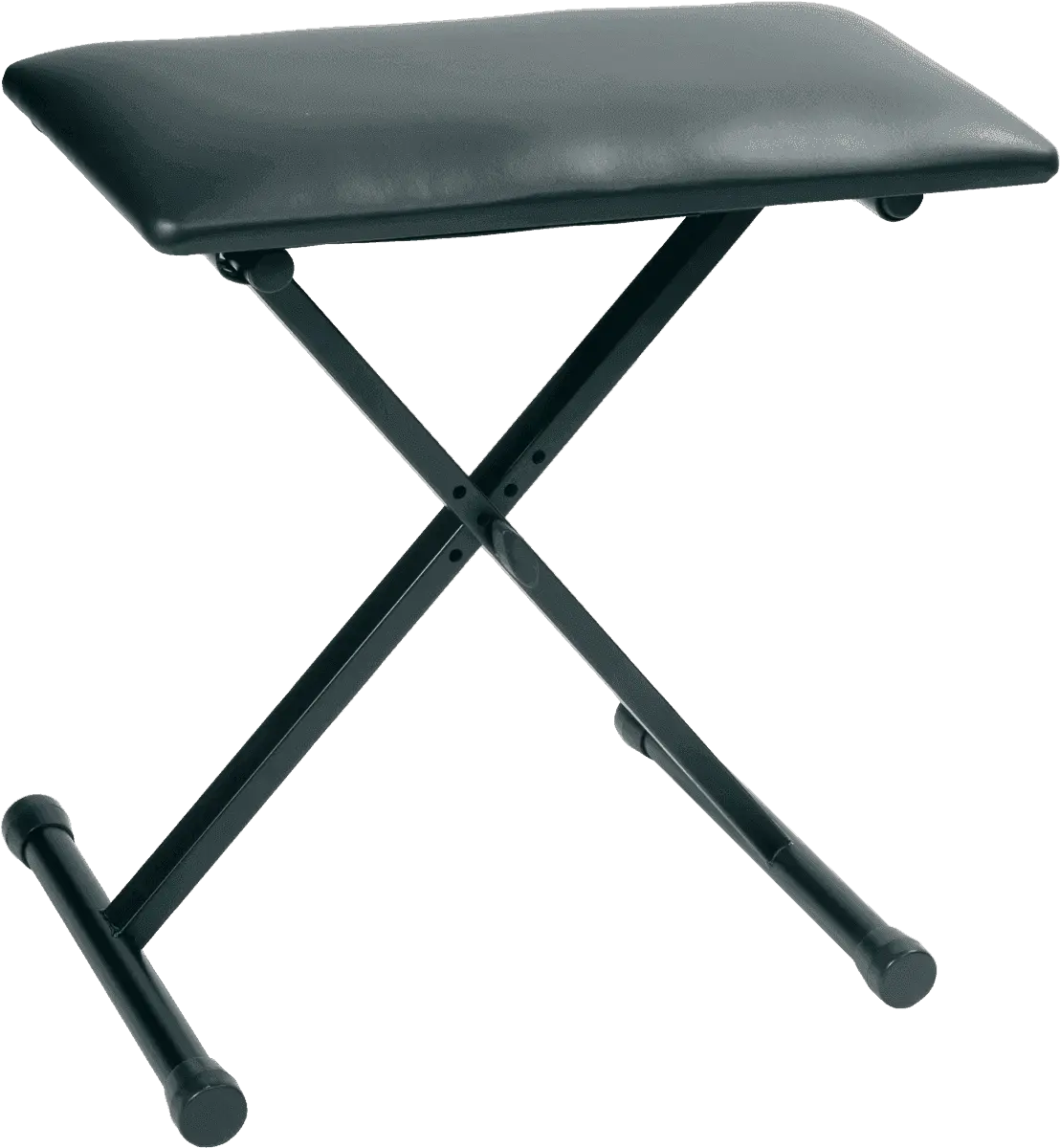 Black piano bench with leather seat and adjustable hight.